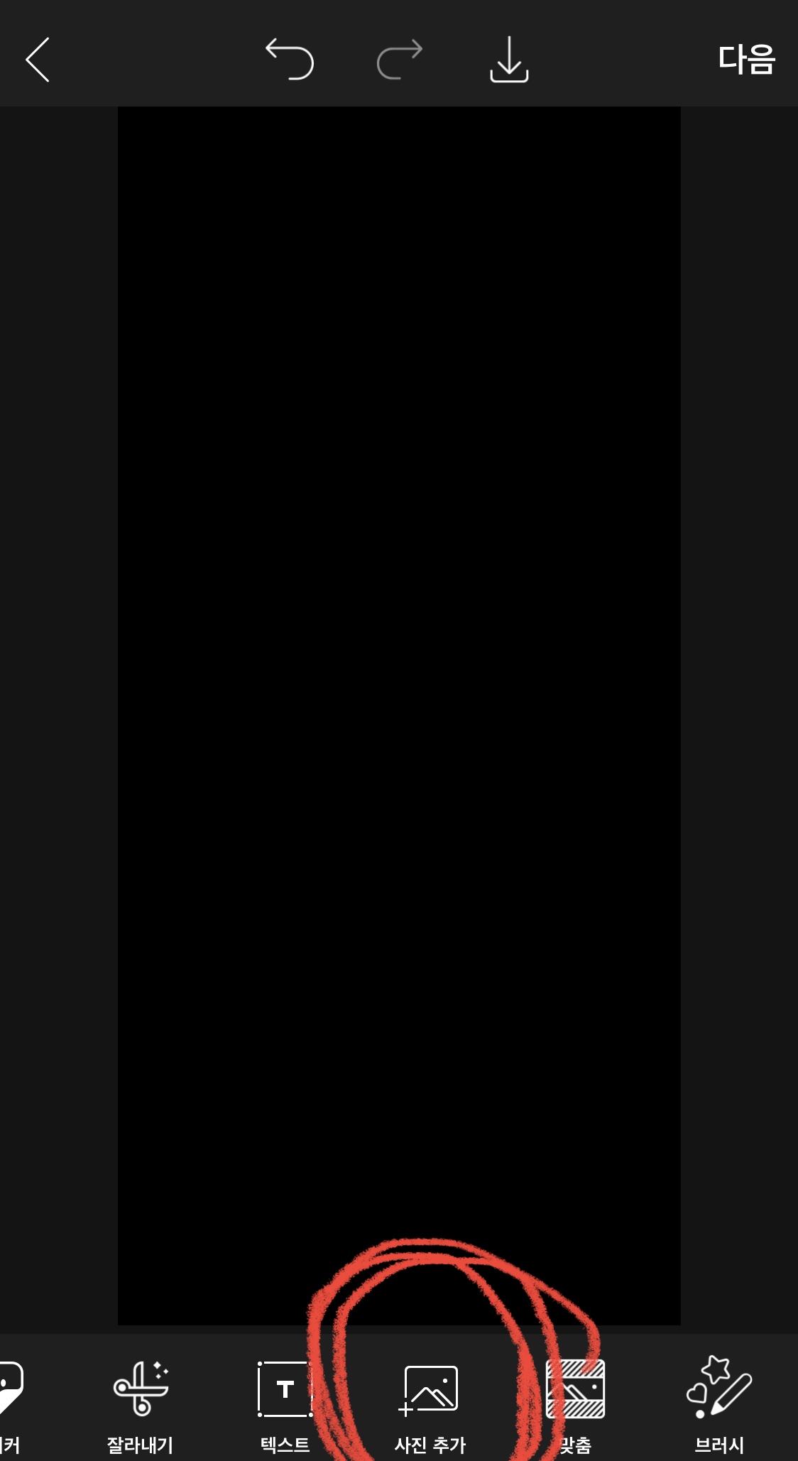 10. 하단 메뉴에서 [ 사진 추가 ] 찾아서 맨 위에서 받았던 이미지를 불러와주세요.