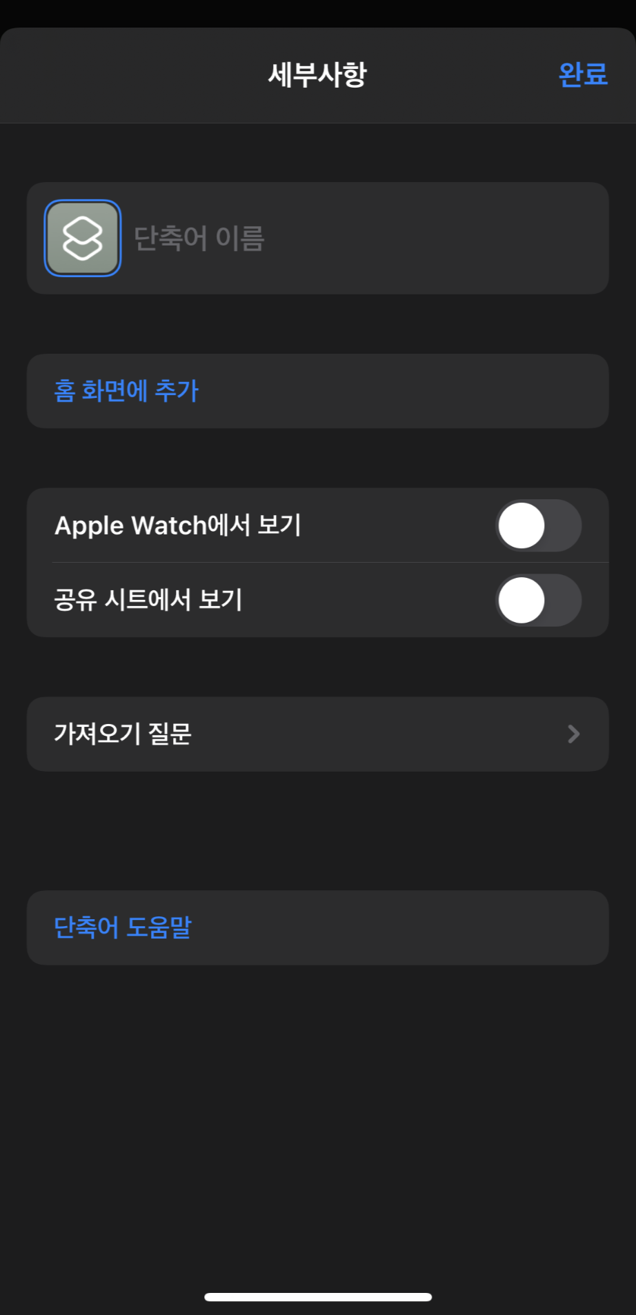 12. 다시 단축어 어플로 돌아와서, [ 홈 화면에 추가 ] 눌러주세요.